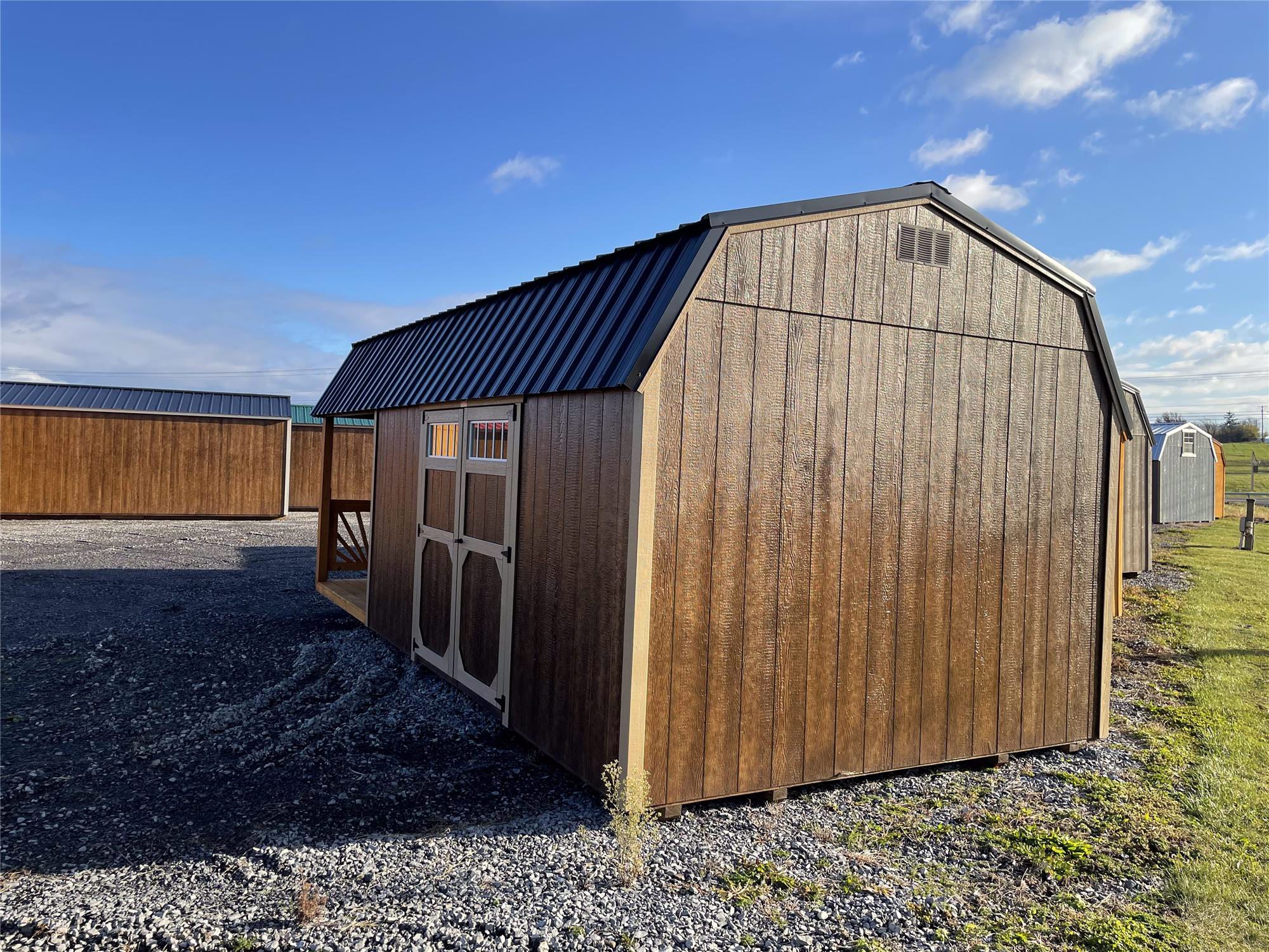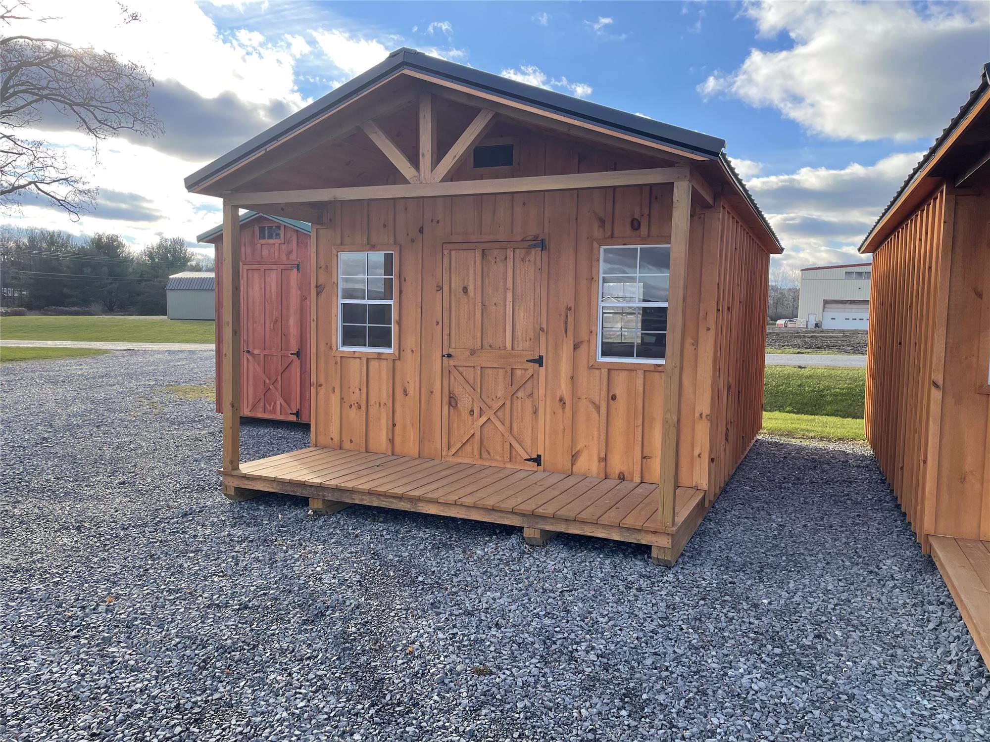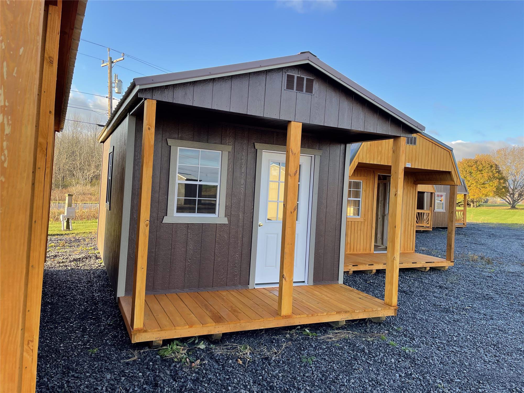 We offer two variations of our cabins. The Deluxe Lofted Barn Cabin has more room with a loft and gambrel roof. The Deluxe Cabin is based on our utility shed layout. Both variations include a front porch, windows, and single-door, but there are plenty of options to customize your cabin.